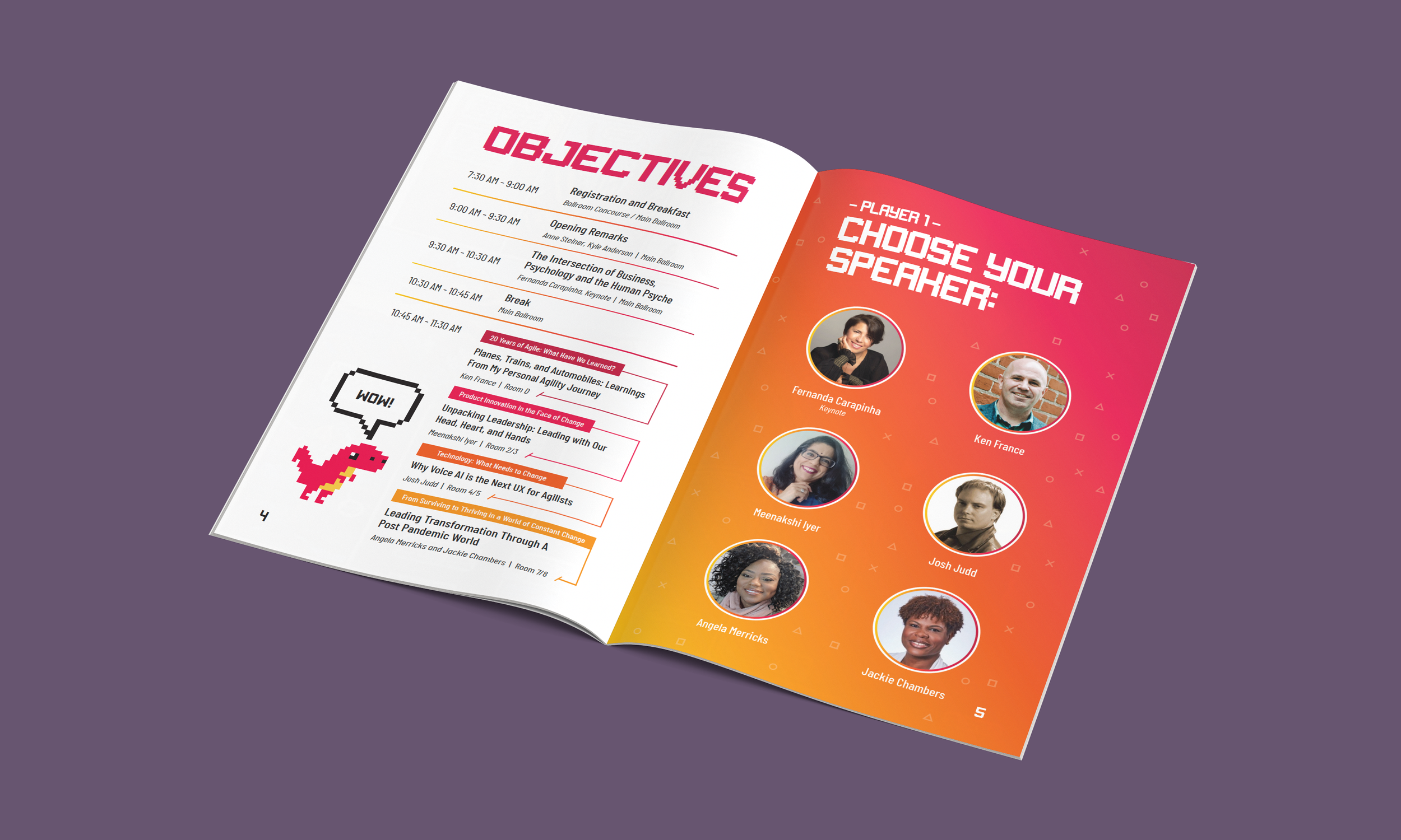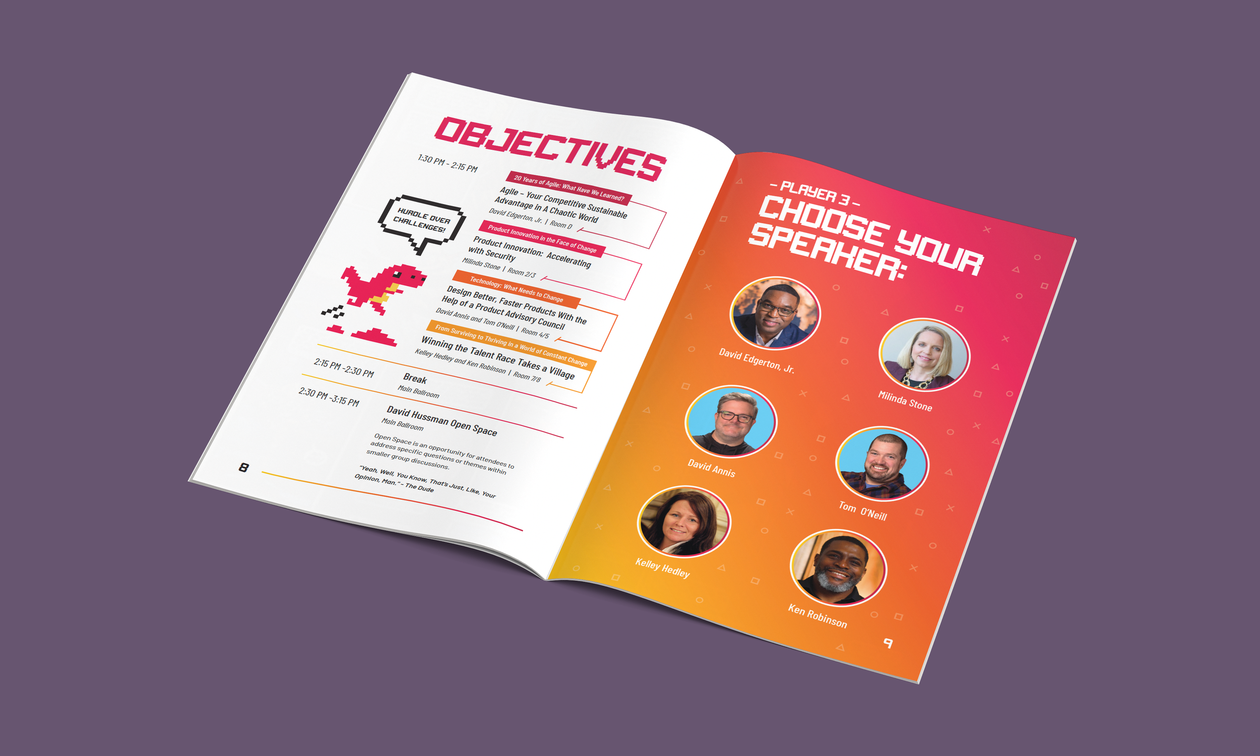 Leaning into a vibrant color palette, energetic tone, and gaming theme for the event. “The Pace of Change is Upping Our Game”