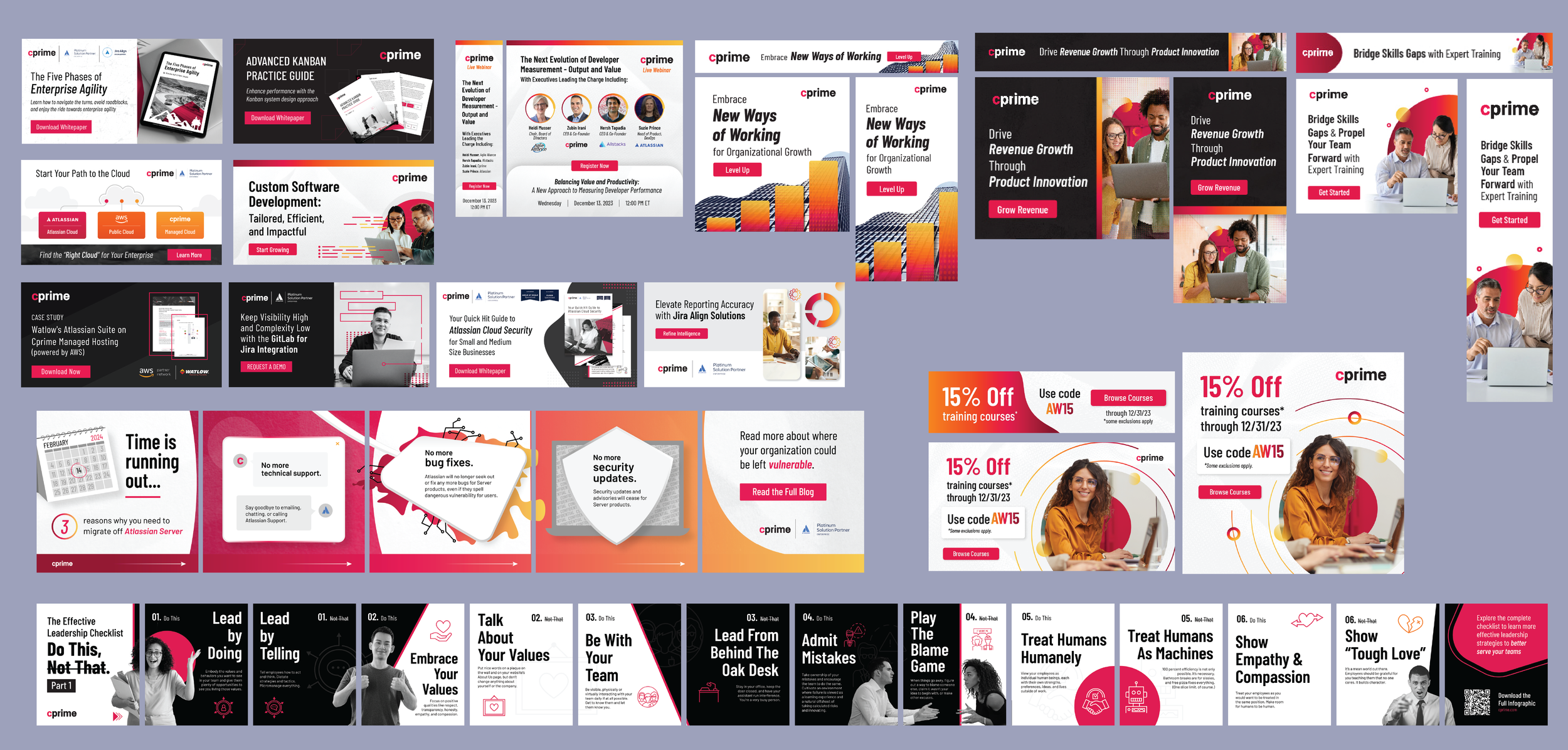 As part of a brand revision in 2020, the Cprime design team looked to reinvent their iconography library. As the visual design strategist, I was a part of the implementation, iconography style origination, and execution of over 300+ new icons. Prior to this project, Cprime was using roughly 20 icons in total with varying styles that proved to be outdated and inconsistent.